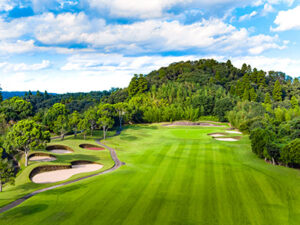 広大なワングリーンと巧みに配置されたバンカー、微妙なアンジュレーションが織りなすダイナミックな戦略性と、季節を問わずフェアウェイ乗り入れ可能な贅沢さが魅力。