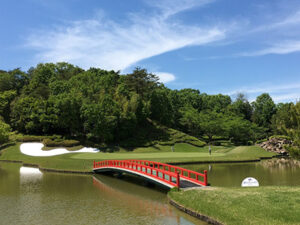 2022年4月7日からカートナビ導入!距離は長くないが、要所に池やバンカーが配され点で攻めるショットが要求される。フェアウェーやラフには数多くのマウンドが点在、グリーンは池・滝・深いバンカーでガードされている。ベントの大きなワングリーンで、アンジュレーションが豊富でスリリングなパッティングを味わえる。戦略性を高めると同時に、洋風の美しい造形美を誇る。4番はグリーンが池に囲まれ、しかも馬の背になっているので落とし所が難しいホール。