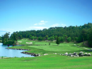 丘陵コース。広大な敷地に18Hがゆったりと展開する。 プレーゾーンの幅が平均70m。グリーン面積は平均700平方m。 しかし戦略上の要所はハザードでしっかりガードしてある。 3番のミドルは自然林をそのまま残した松林の谷越え。14番ミドルは、大きな池とクリークを配した水の名物ホール。 挑戦意欲を刺激するホールの顔がなかなかうまくマッチしている。